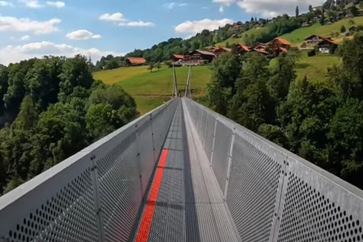 Visit the picturesque Lungern Lake, featured in *Crash Landing on You* during a romantic picnic scene. Explore the house where the final picnic was filmed and soak in the tranquil beauty of the lake through leisurely walks or simply enjoying the serene atmosphere. Experience Giessbach Falls, the backdrop for an emotional reunion in the series. This location combines stunning natural beauty with the dramatic romance of the storyline, offering fans a chance to relive a key moment. Explore the charming village of Iseltwald, home to the iconic pier scene where Ri Jeong-hyeok plays the piano. Relive the romantic atmosphere of the series in this magical lakeside setting. Walk across the breathtaking Sigriswil Suspension Bridge, where another pivotal reunion scene was filmed. Enjoy sweeping views of Lake Thun and the Alps while connecting with the drama’s memorable moments. Visit the elegant Hotel Victoria Jungfrau, a setting for significant scenes in the series.